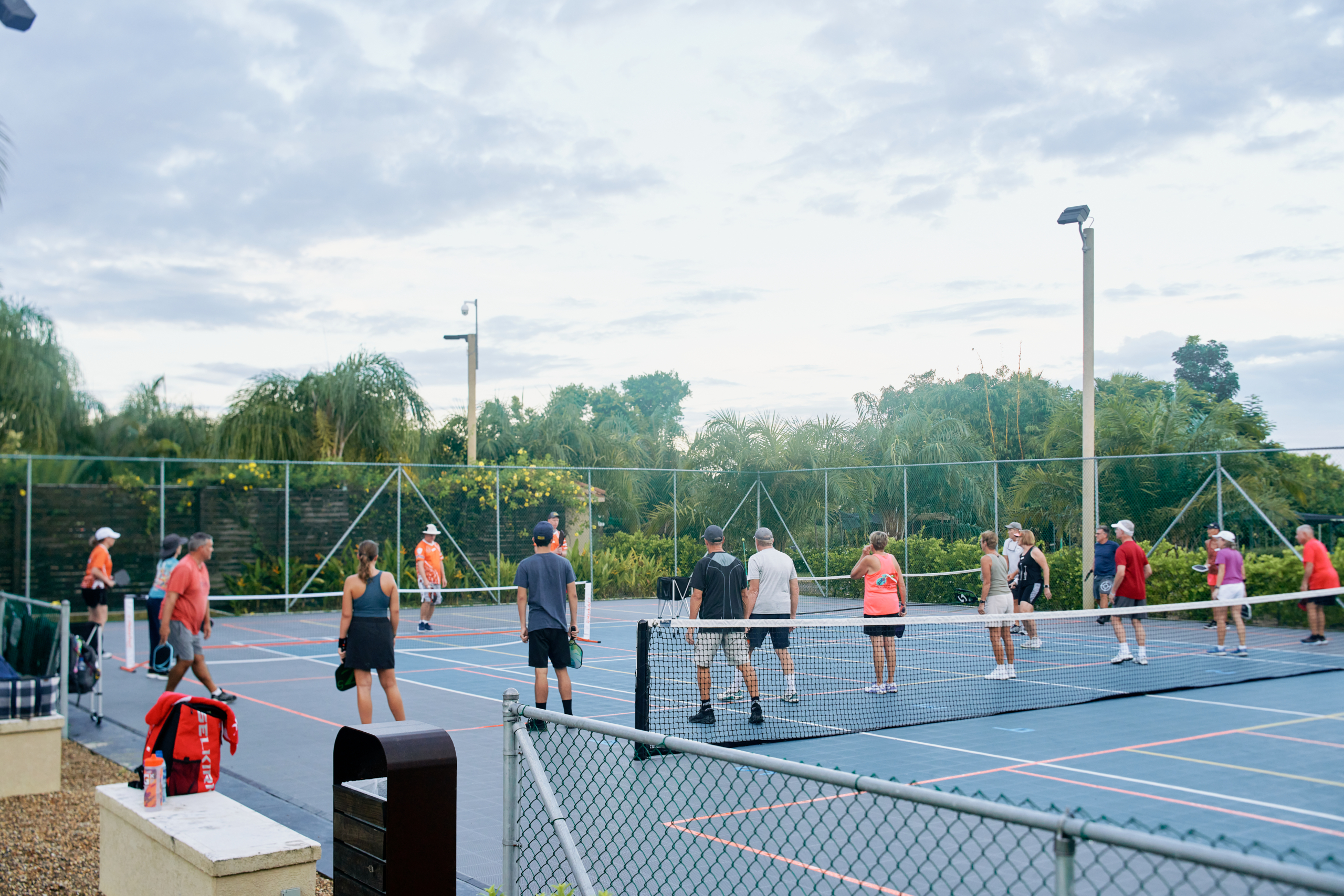 Enjoy 3 hours of coached play Monday – Friday with open plays available in the evenings. We’ll finish with a round-robin tournament on Friday morning.